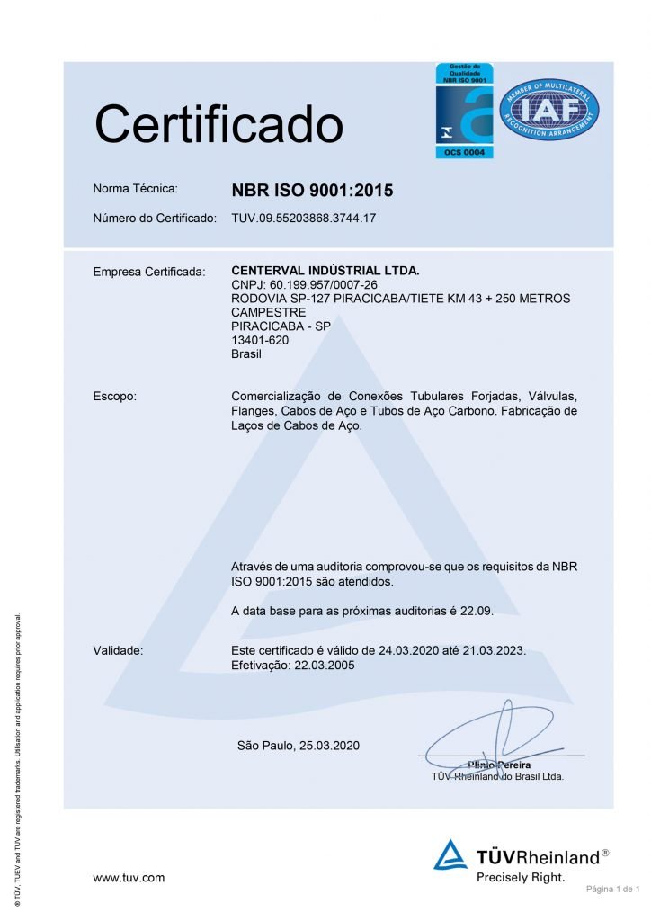 A Centerval tem o compromisso de fabricar e revender produtos que atendam as especificações dos clientes e as normas técnicas aplicáveis, através da melhoria continua de seus produtos e de seu sistema de gestão da qualidade.